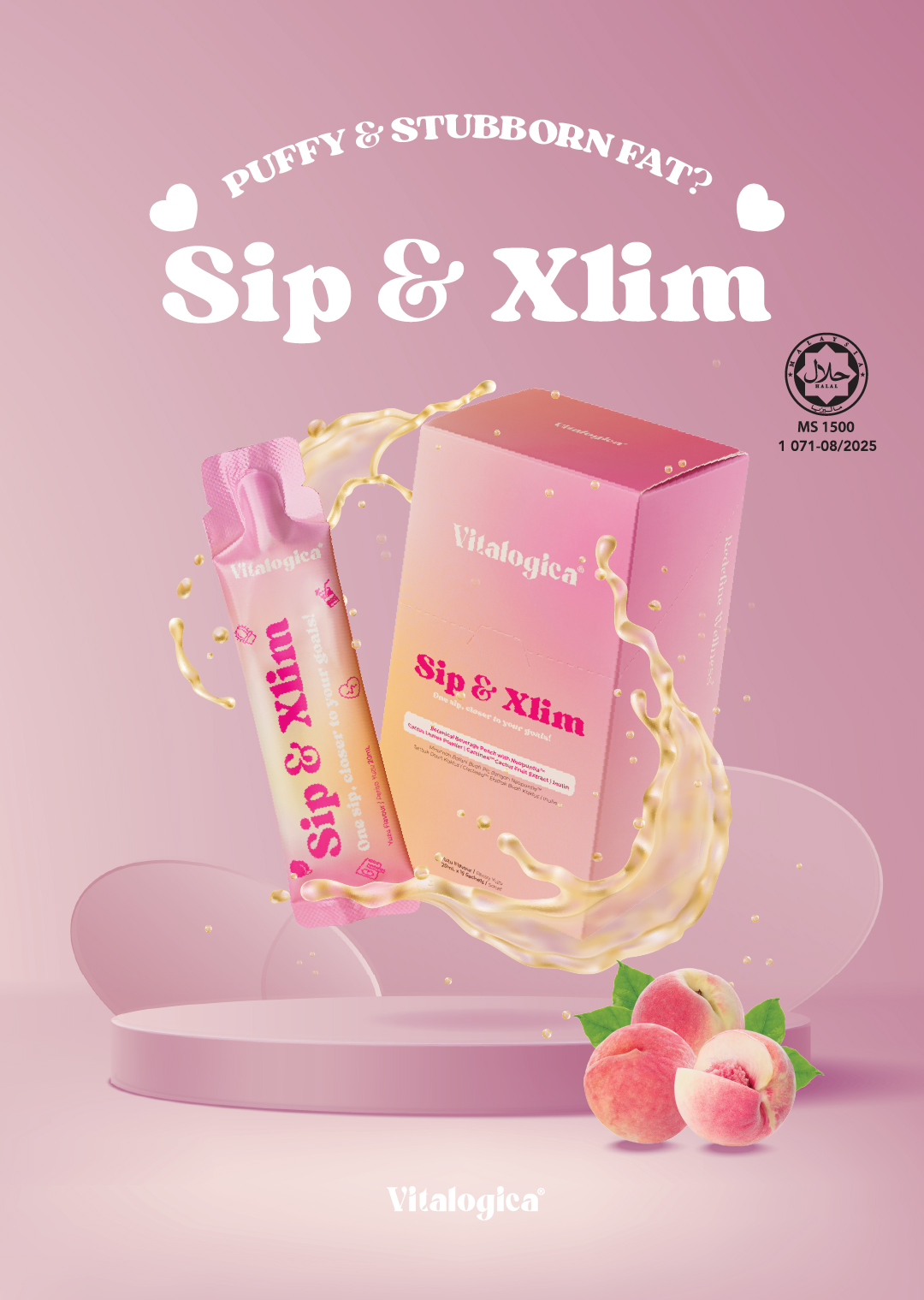 Vitalogica®️ Sip & Xlim is a refreshing yuzu-flavoured sachet powered by Neopuntia™️ cactus leaves powder, Cactinea™️ cactus fruit extract, inulin and other premium ingredients. It works from within to improve weight control by reducing fat absorption and water retention while supporting a healthy gut for a lighter, healthier body.